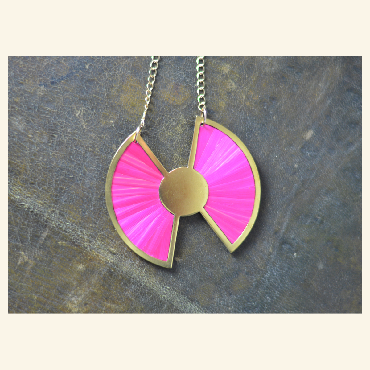 - Les jeux de lumière de la paille rose et du laiton poli subliment les harmonies des vêtements et confèrent une identité forte à l'ensemble.