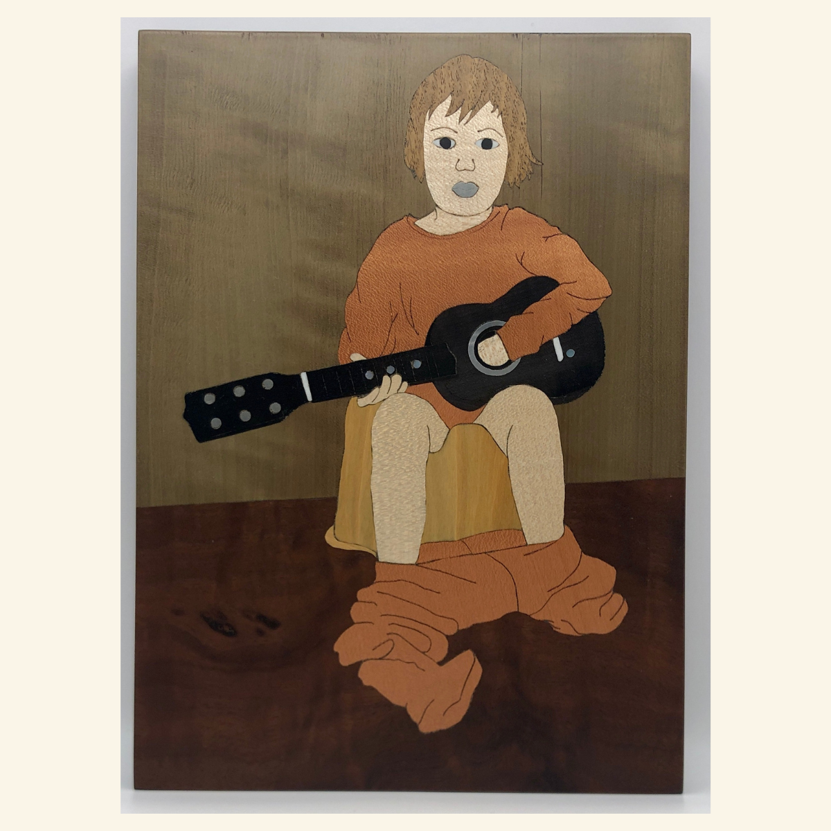 Le bois, l’étain, l’os et la nacre composent ce tableau.